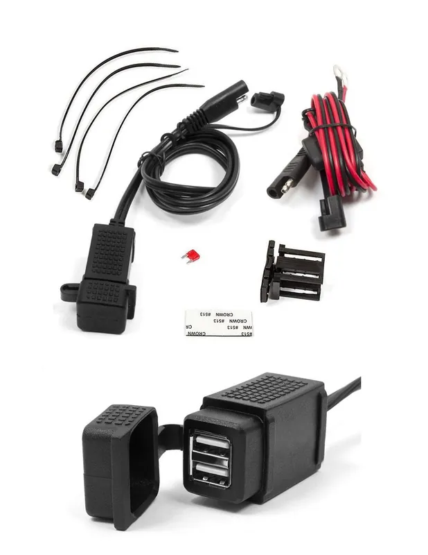 Motocyklowe gniazdo USB mocowane do kierownicy. Uniwersalne wyjścia USB sprawiają że gniazdo jest kompatybilne z praktycznie każdym urządzeniem dostępnym na rynku np. nawigacje, telefony i inne.Produkt posiada wymienny bezpiecznik chroniący instalację motocykla. Gniazdo zostało wyposażone w rozłączany kabel z szybkozłączem SAE.Wejście: DC 12-24VWyjście: DC 5V / 3.1AStopień ochrony: IP54Długość kabla: 2 mWaga: 179g