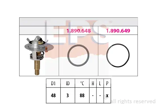 Termostat EPS 1.880.617K jest artykułem o numerze 05261880617K. Kod EAN przypisany do produktu to 8012510224083. Temperatura cieczy, przy której termostat otwiera jej obieg do chłodnicy to 87 °C.