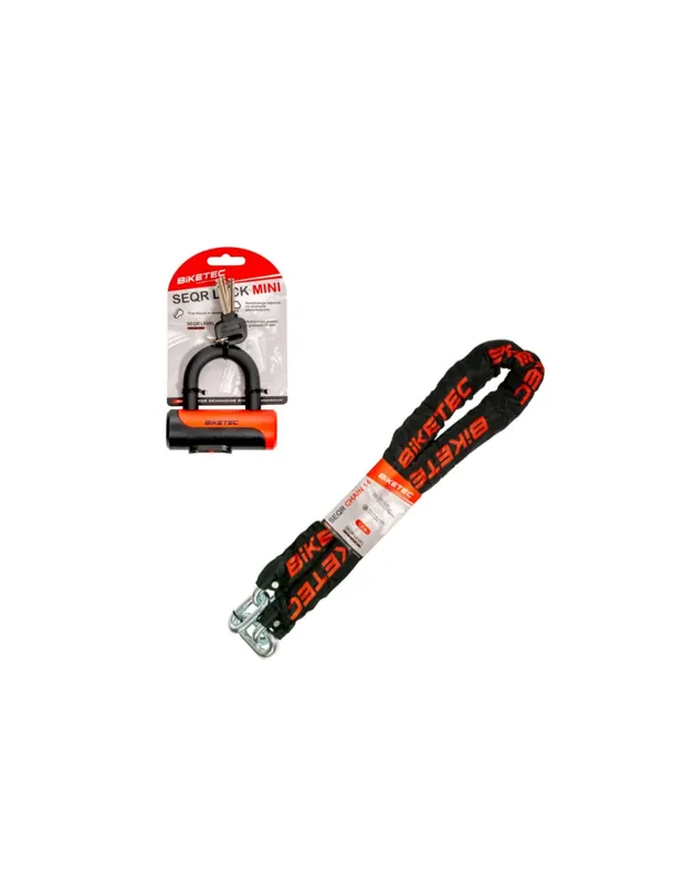 BIKETEC SEQR ZESTAW ŁAŃCUCH 1,5M, OCZKO 14MM, CZARNA OTULINA + BIKETEC SEQR KŁÓDKA NA KLUCZ (ZESTAW 3 KLUCZY) ROZMIAR 102MM X 100MM