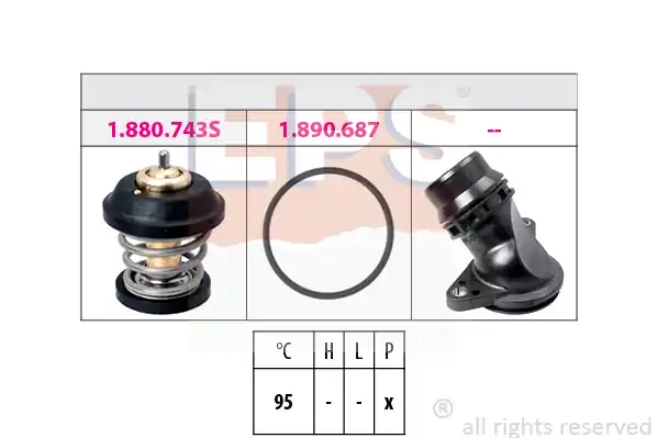 Termostat EPS 1.880.793K jest artykułem o numerze 05261880793K. Kod EAN przypisany do produktu to 8012510227688. Temperatura cieczy, przy której termostat otwiera jej obieg do chłodnicy to 80 °C.