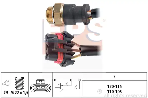 Włącznik wentylatora TOPRAN 300 633 to artykuł przypisany do numeru 0479300633. Wyłączenie wiatraka następuje przy schłodzeniu płynu do 98 °C. Wymiar gwintu włącznika to M 22.