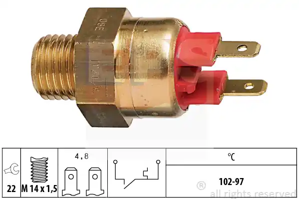 Włącznik wentylatora EPS 1.850.050 odpowiada za uruchomienie wiatraka chłodnicy w momencie, gdy temperatura płynu chłodzącego przekroczy dopuszczalną wartość. Dzięki temu silnik pojazdu może być efektywnie schłodzony, co chroni jednostkę przed przegrzaniem. W chwili osiągnięcia przez płyn chłodniczy zbyt wysokiej temperatury włącznik wysyła sygnał, który inicjuje pracę wentylatora. W przypadku awarii włącznika wentylatora jazda samochodem staje się dosyć ryzykowna. Duże prawdopodobieństwo przegrzania może doprowadzić do tego, że awaria włącznika wentylatora, której usunięcie jest stosunkowo tanie, zmieni się w kosztowny remont lub całkowitą wymianę silnika.